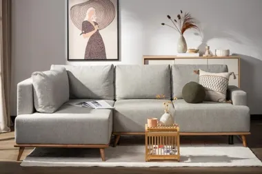 Hitem ostatnich sezonów w aranżacji przestrzeni dziennych są meble z charakterystycznymi tapicerkami o wyraźnej teksturze: z pluszu, bouclé i lnu. To materiały, które świetnie wyglądają w różnych odcieniach – zarówno intensywnych, jak i neutralnych – i same w sobie są piękną ozdobą wnętrza. Klasyczny popielaty albo beżowy narożnik obity wyrazistą tapicerką będzie fantastyczną podstawą ponadczasowego wnętrza w stylu skandynawskim, japandi, minimalistycznym czy modern glam. Dobrze wpisze się też w modne klimaty Y2K, czyli estetykę lat 2000.