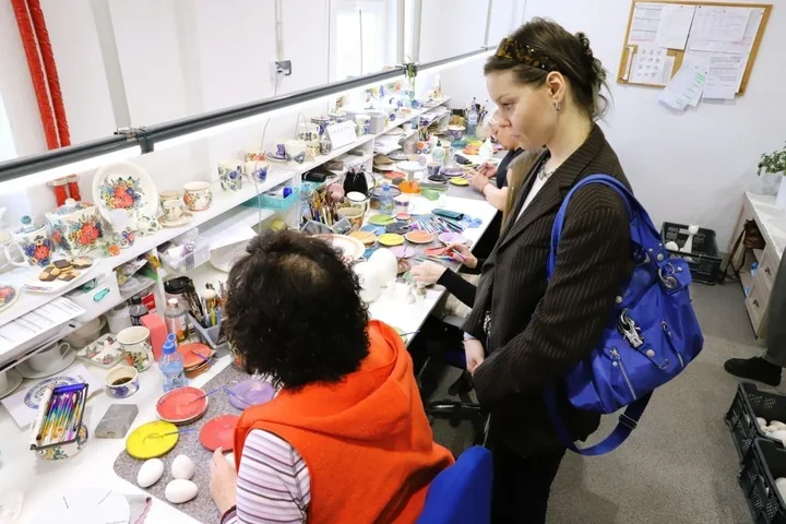 Fabryka Fajansu stała się dla artystki czymś więcej niż tylko miejscem wizyty. To właśnie tam mogła zobaczyć z bliska ornamenty, rytm zdobień i sposób, w jaki lokalny wzór potrafi przetrwać dłużej niż pojedynczy przedmiot. W takim ujęciu fajans nie jest jedynie pamiątką rzemiosła, ale językiem, którym Włocławek mówi o sobie od pokoleń.