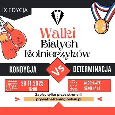 - Wyposażenie: obowiązkowe kaski oraz własne rękawice (mężczyźni 16 oz, kobiety 12 oz). Organizator nie odpowiada za stan sprzętu.
