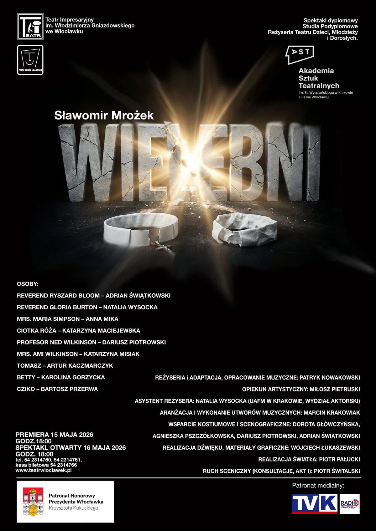 - Spektakl premierowy: 16 maja 2026 (sobota), godz. 18:00
